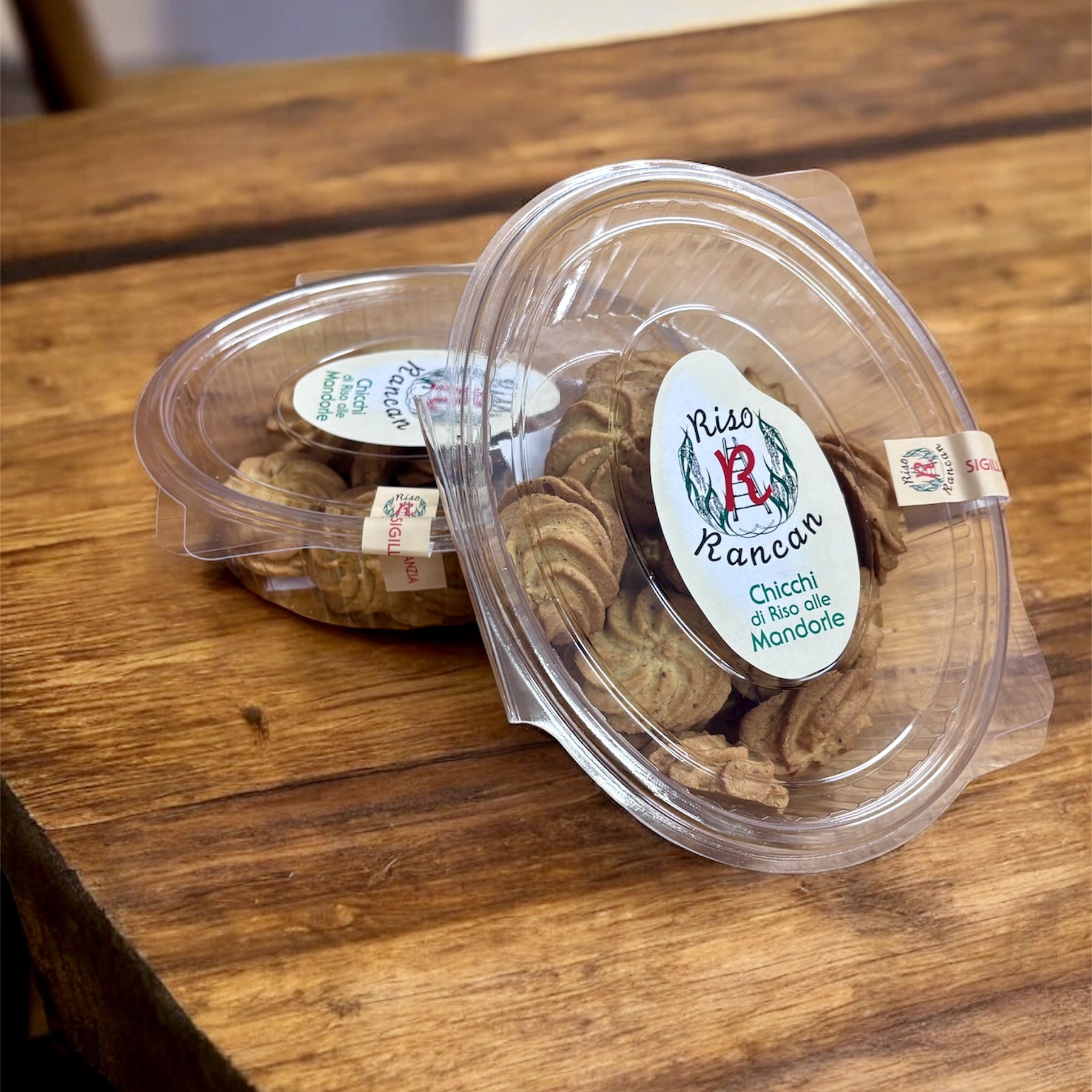 I chicchi di riso alle mandorle sono biscotti prodotti da un forno artigianale con la nostra farina di riso, infatti sono privi di conservanti.